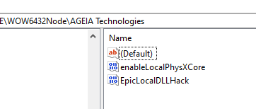 Oh, and what about EpicLocalDllHack? Well… it does literally nothing. Absolutely worthless, it’s never read. The only thing I can think of that it could maybe exist for is to keep the registry key around if a PhysX redistributable is uninstalled, as it’s not part of the PhysX redistributable’s list of values – but that’s just a guess.