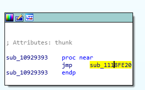 This seems to be some sort of wrapper subroutine, or perhaps something IDA does, but it just points to another subroutine. Let’s go there instead.
