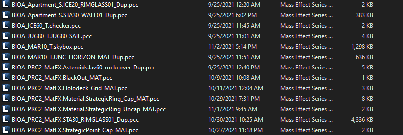 The set of ME1 files to be ported are known as ModdedSource files. We made minor changes to these files , such as renaming things that need to be memory unique, or to take a specific donor object when porting. We also made changes that only have to occur in a single file here, like basic sequence fixes. These files would almost certainly crash ME1 if you tried to put them back into ME1, as they are specifically tailored for use with VTest.
