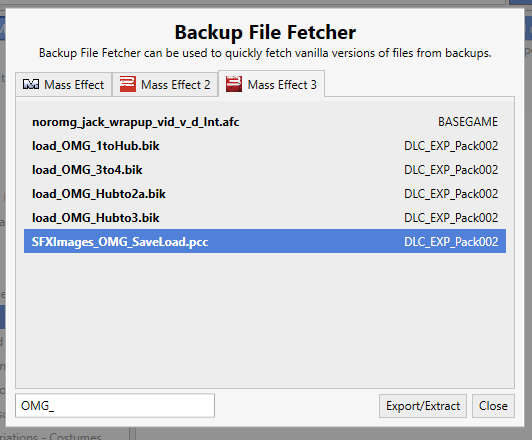 Extracting items from DLC used to be a pretty awful process. Over the years since I wrote the original version of this guide, it has become far, far easier, and multiple times faster. What used to take hours now takes minutes, thanks to Aquadran's work on MassEffectModder. We can unpack specific DLC quickly and easily using ME3Explorer - ME3Tweaks Fork's DLC Unpacker. It is very easy to use, so I won't detail it here. You can run ME3Explorer - ME3Tweaks Fork from the Tools menu of Mod Manager. Open DLC Unpacker and unpack the DLC. It may be useful to make a copy of the game once DLC has been unpacked.