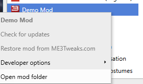 And there you have it. If you found starter kit or this guide useful and want to say thanks, just give credit to Mgamerz/ME3Tweaks Mod Manager on your mod page, I appreciate it. If you want your mod listed on the ME3Tweaks mods page and homepage, come to my discord and drop me a link.