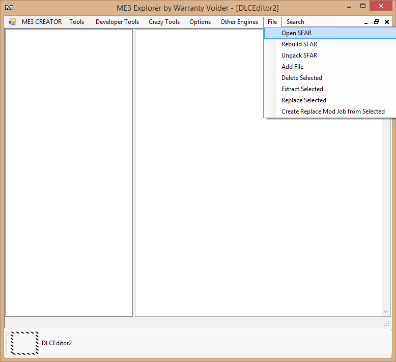Depending on the version you have you might have a slightly different interface. This tutorial will use DLCEditor2, but you can use DLCEditor if you want a more polished look. Both are functionally the same when extracting files. Select DLCEditor2 from the Tools menu.