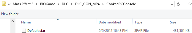 Once the tool is open, select File, then Open SFAR. Navigate to /BIOGame/DLC/DLC_CON_MP4/CookedPCConsole and select the Default.sfar file.