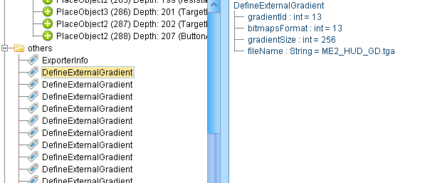 In the above image, an export with the name of ME2_HUD_GD in the same package as this SWF will hold the gradient it is importing.
