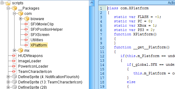 Scripts. Scripts scripts scripts. We will be doing almost all of our work in the scripts section, as it is by far the most flexible item in the SWF you can edit. We have nearly fully compilability here - we can write new code, call (to a limited extent) game functions, reposition elements and change variables (in the SWF).