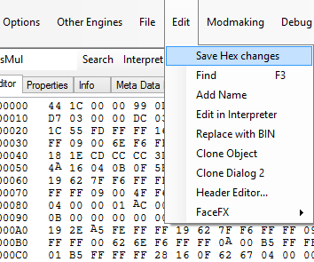 Huzzah! It's token 0x27, True, right where it said it would be. Place your cursor on the 7 and change it to 8 so it now reads 28. Now go to Edit->Save Hex Changes. You won't see anything happen, but we now need to verify that the change took effect. Click on any other entry in this pcc (such as the Initialize script again), and then back to SetInitialState.