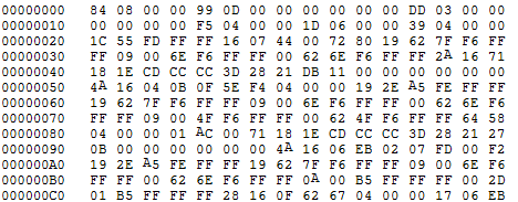 Look at the C0 line, which means that the first item on this line is 0xC0 (address). We are looking for 0xC5, so we go 5 bytes to the right. A hex couple is a byte (two 4-bit numbers), so its just 5 couples to the right.