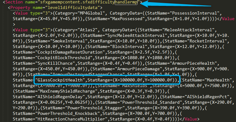 Edit them all for level1difficultydata,level2difficultydata,level3difficultydata and level4difficultydata. Save your changes and close the file. You now need to find Default_DLC_CON_MP4.xml file (it's in the same folder as Default_DLC_CON_MP4 that Tankmaster's tool made - above Biodifficulty.xml). Drag and drop this file back onto Tankmaster's Coalesce tool and it will recompile the Default_DLC_CON_MP4.bin file for you.