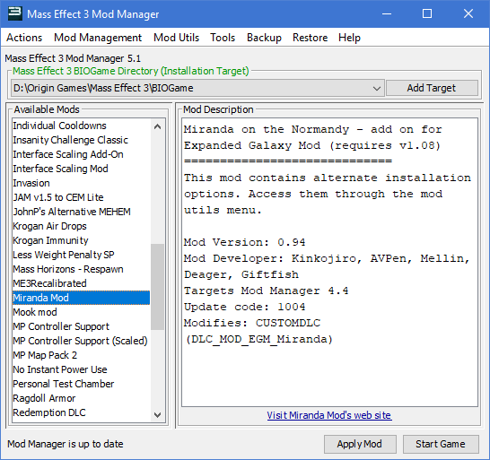 Mod Manager allows you to easily install and uninstall mods as well as make new ones.